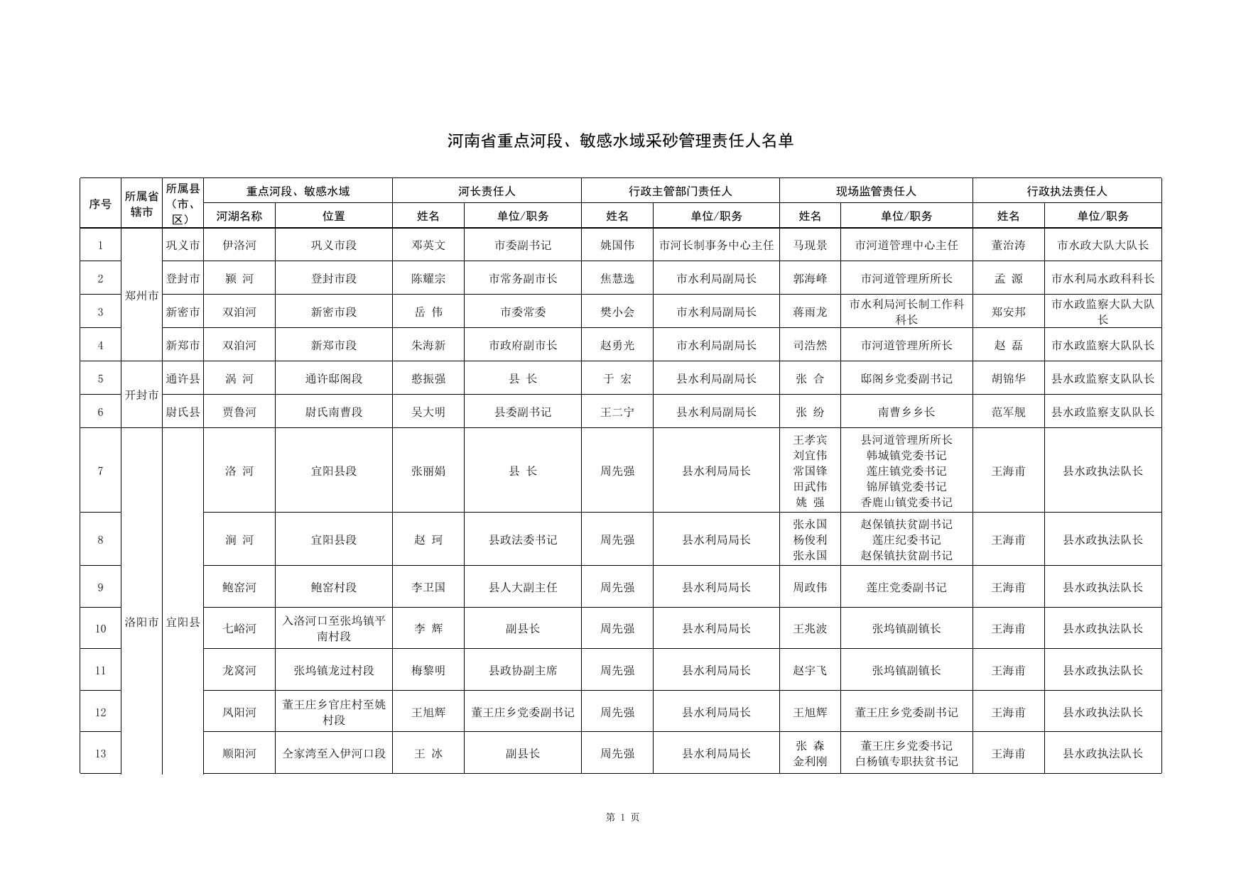 河南省河长制办公室关于全省河道采砂管理重点河段、敏感水域相关责任人名单的公告_通知公告_河南省水利厅.xls