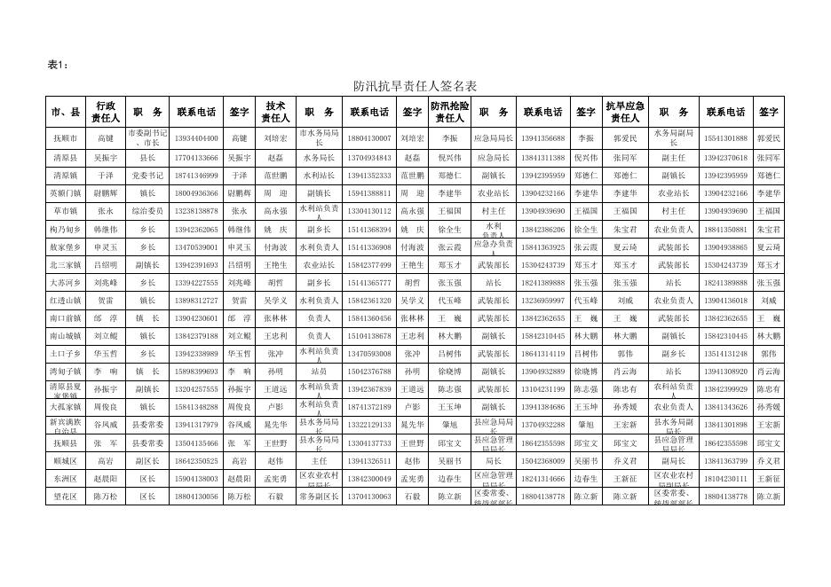 抚顺市各类防汛抗旱责任人(大江大河、水库、村等)汇总表.xls
