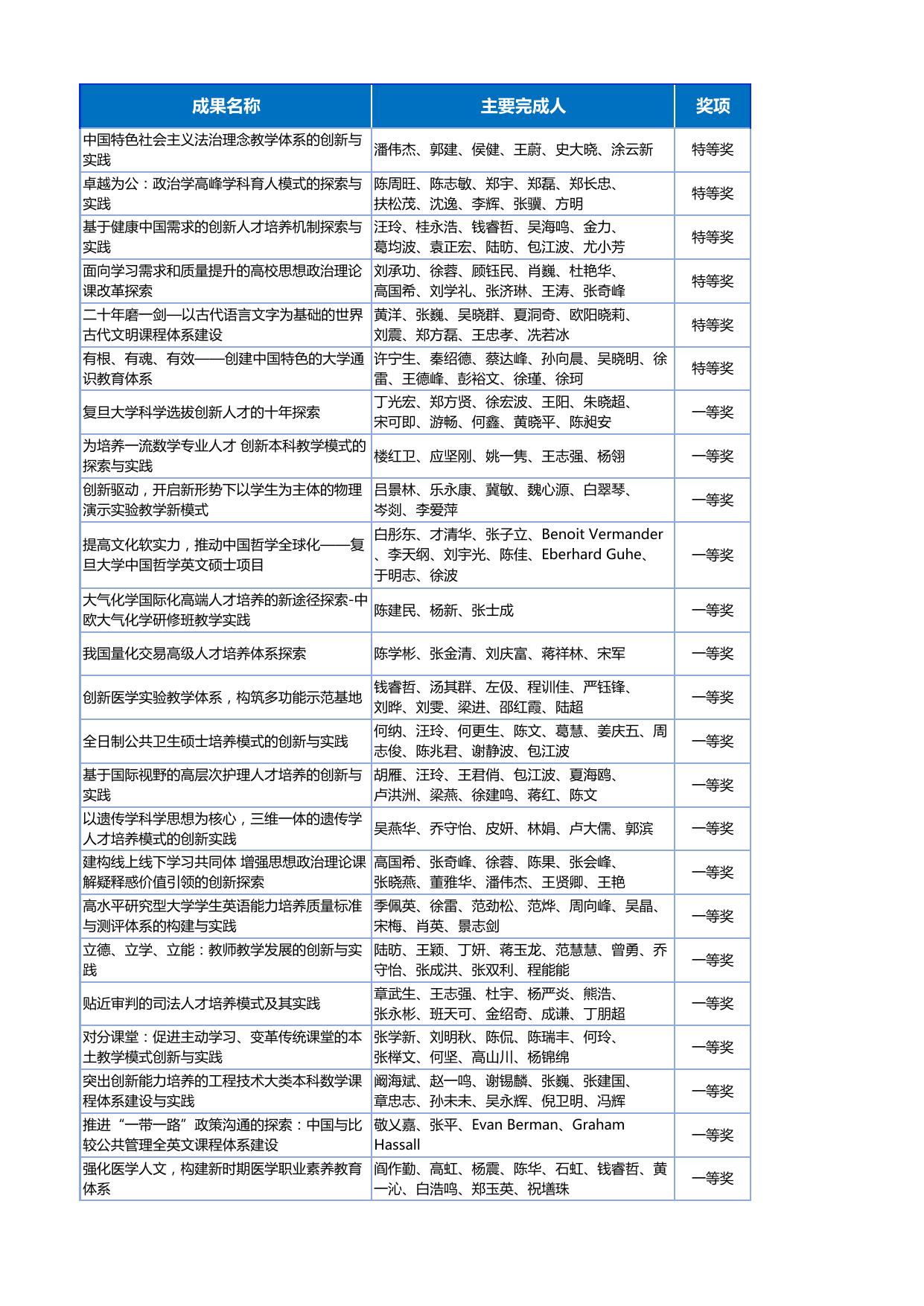 2017年上海市教学成果奖(高等教育)复旦大学获奖名单.pdf