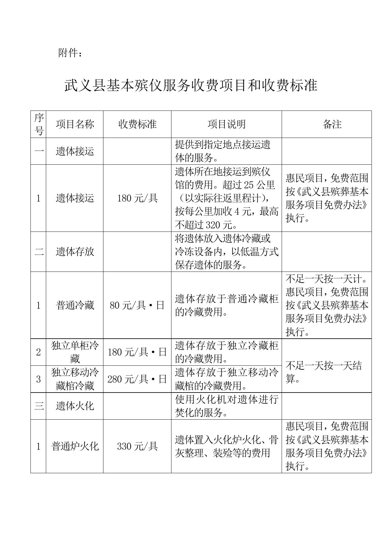 附件:武义县殡仪馆基本服务项目和收费标准.docx
