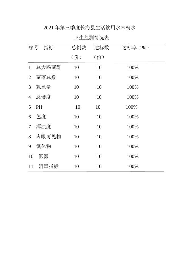 附件:2021年第三季度长海县生活饮用水末梢水卫生监测情况表.docx