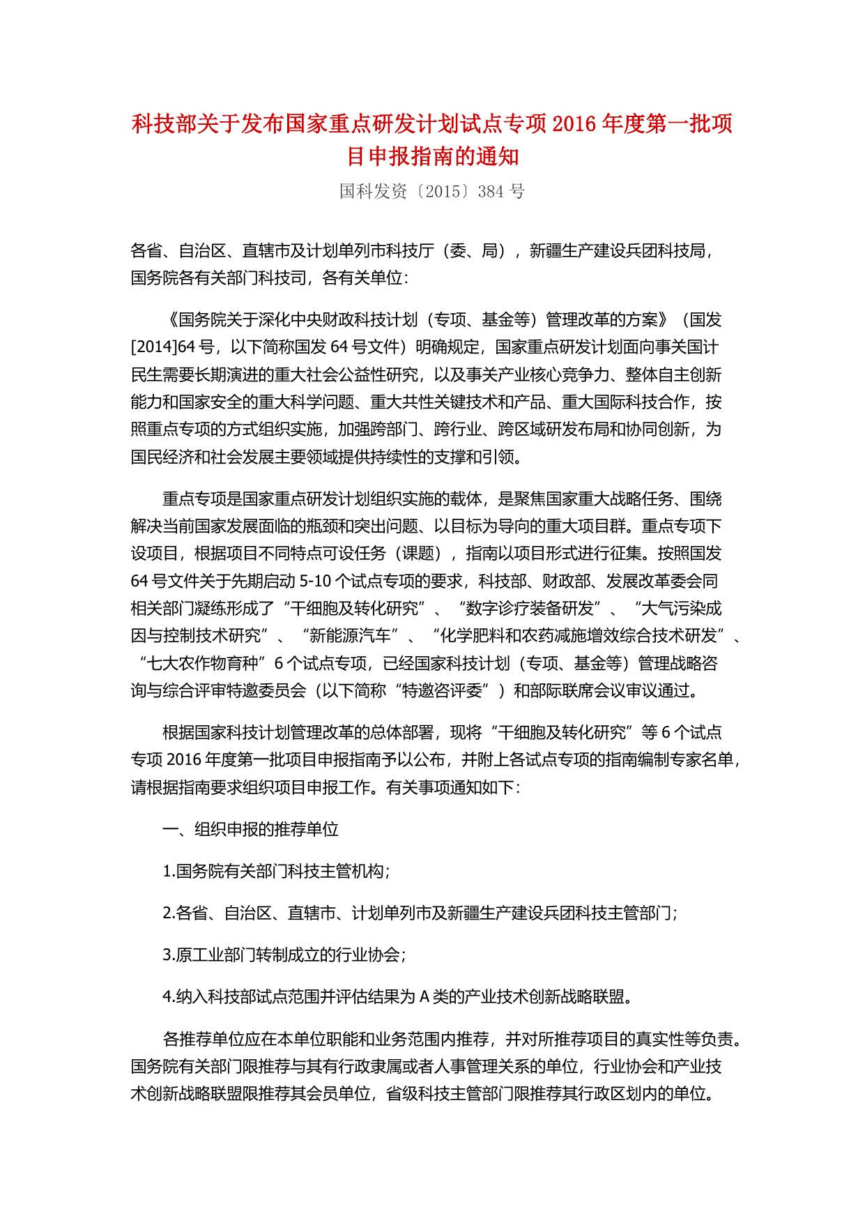 长安大学公路学院附件1:科技部关于发布国家重点研发计划试点专项2016年度第一批项目申报指南的通知.docx