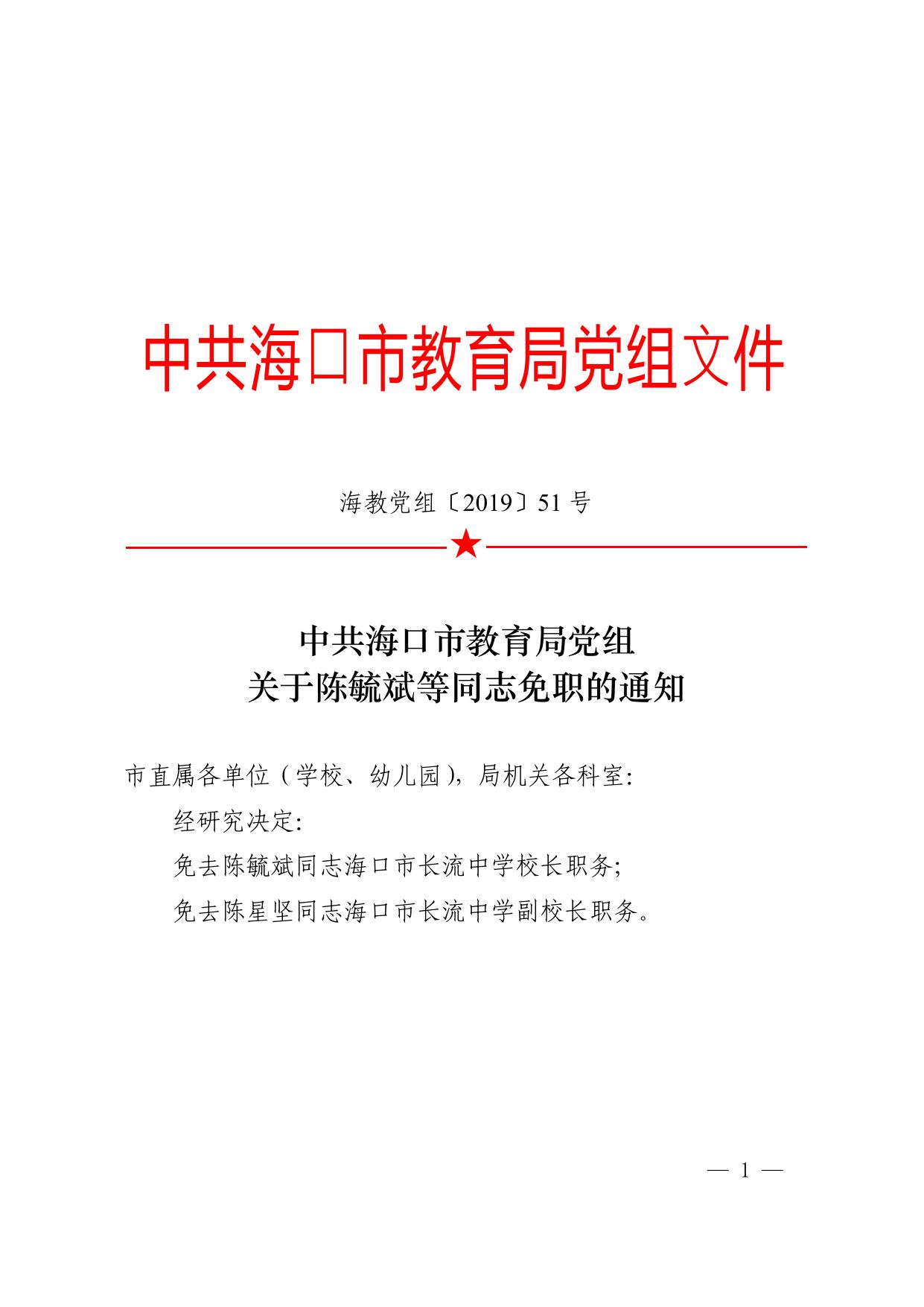 中共海口市教育局党组关于陈毓斌等同志免职的通知.pdf