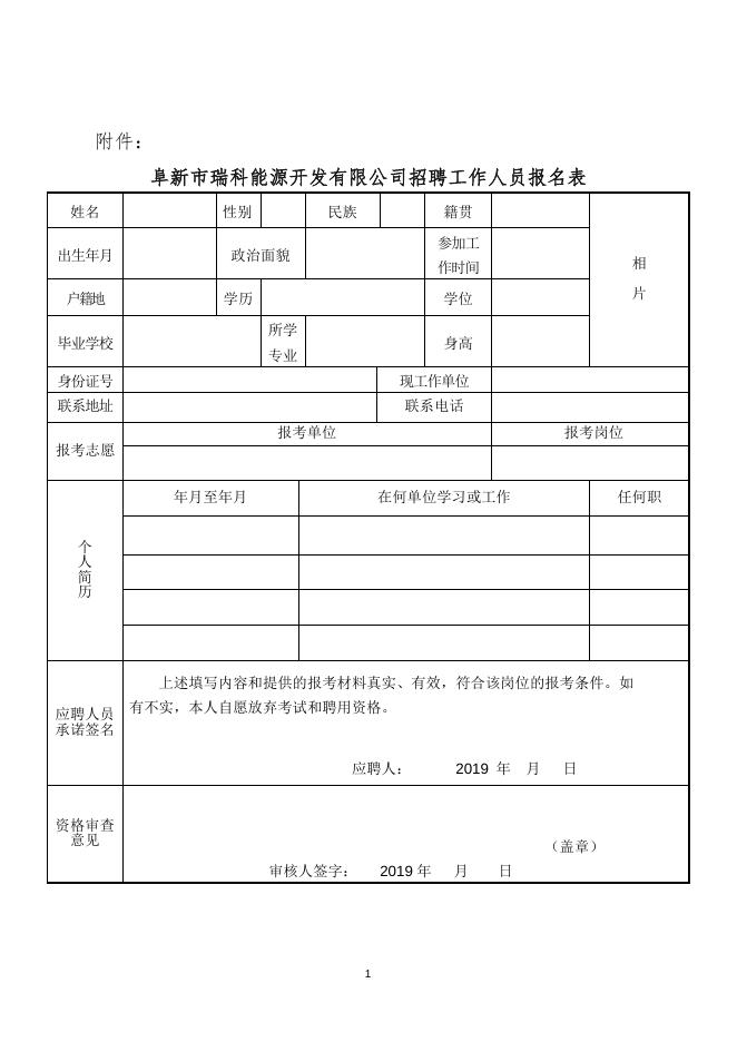 阜新市瑞科能源开发有限公司招聘工作人员报名表.docx