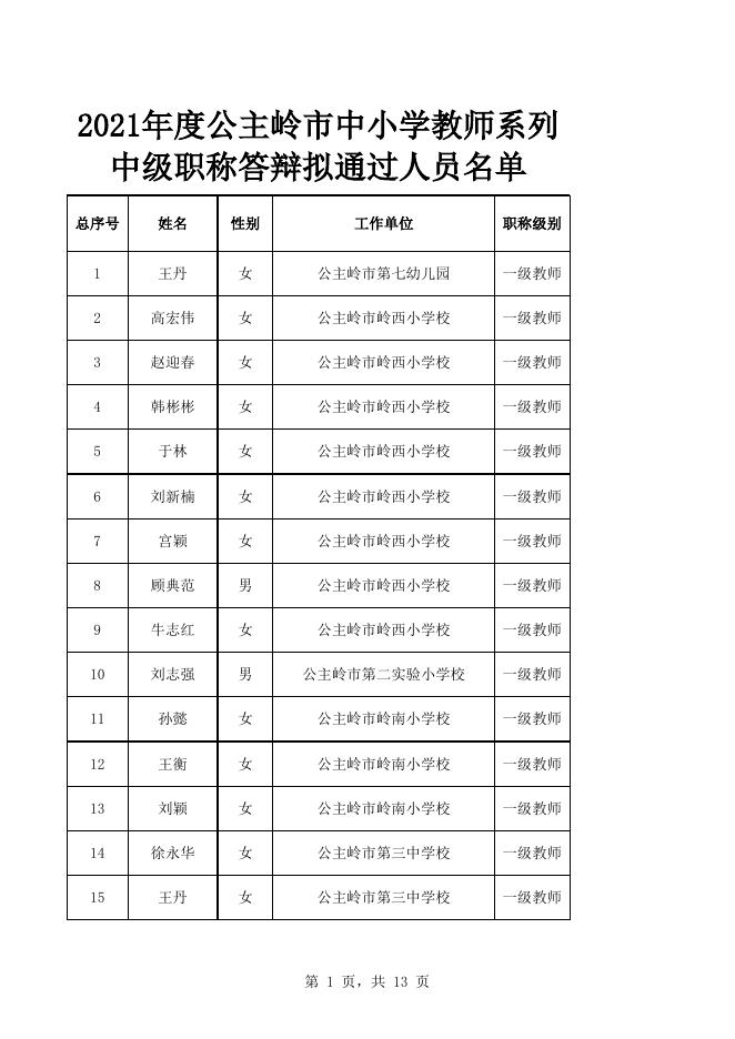 2021年度公主岭市中小学教师系列中级职称答辩拟通过人员名单.xls