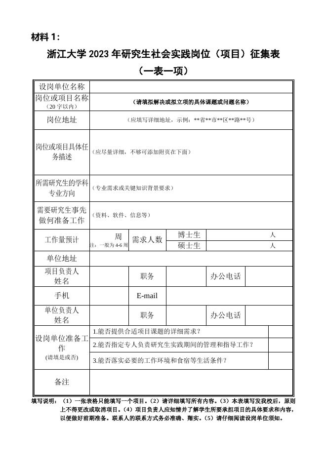 材料1:2023年浙江大学研究生社会实践岗位(项目)征集表.doc