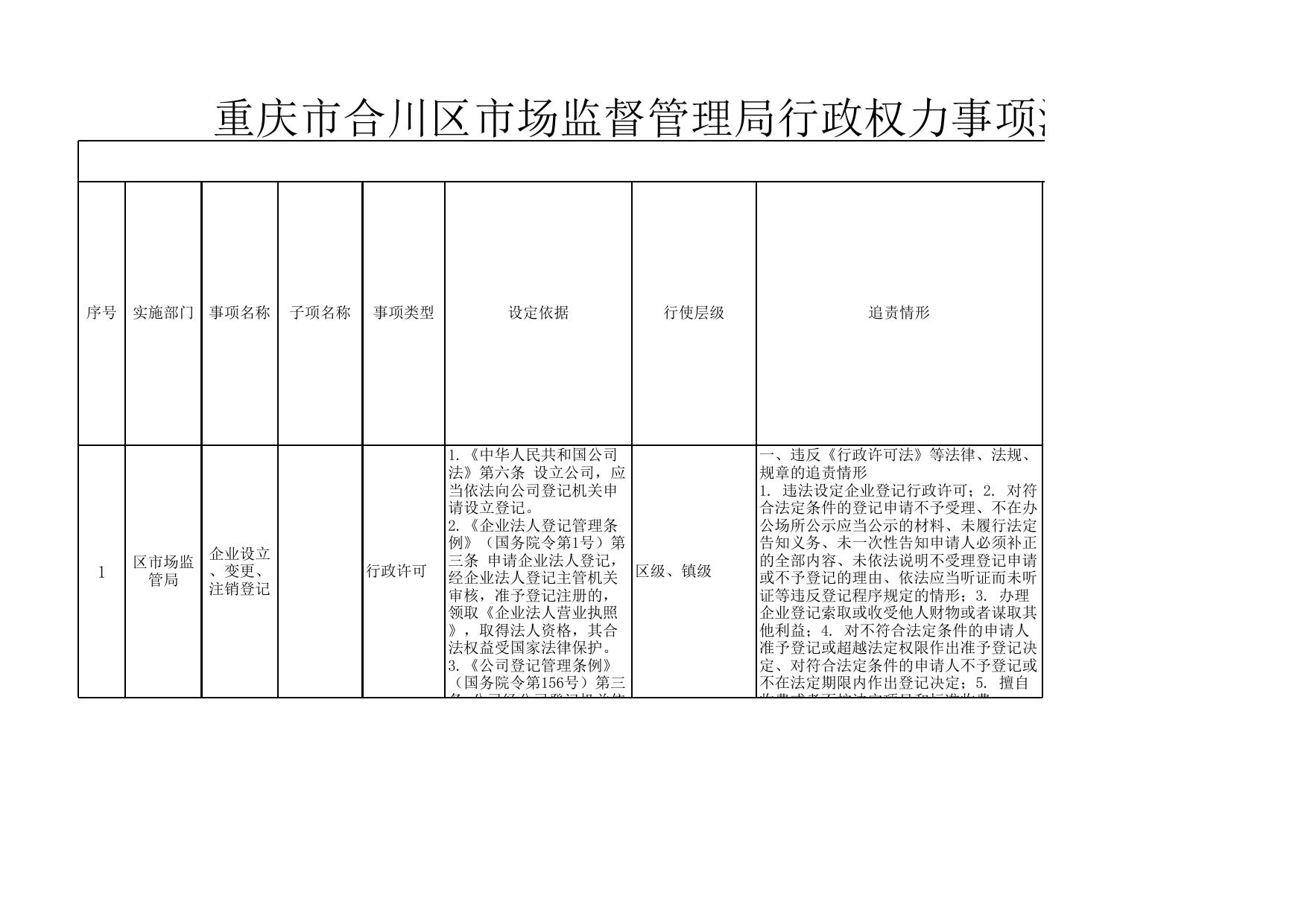 重庆市合川区市场监督管理局公共服务事项清单(2020年).xls