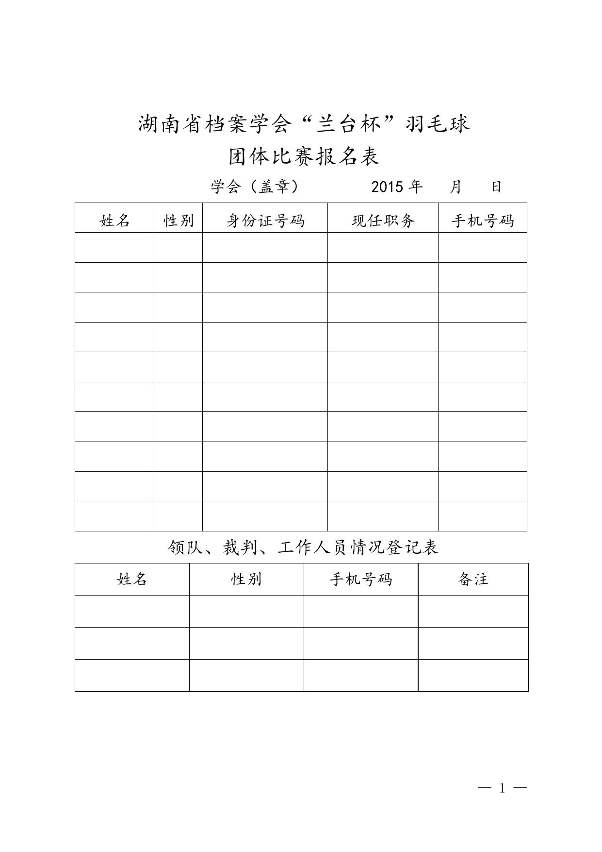 湖南省档案学会“兰台杯”羽毛球团体比赛报名表.doc