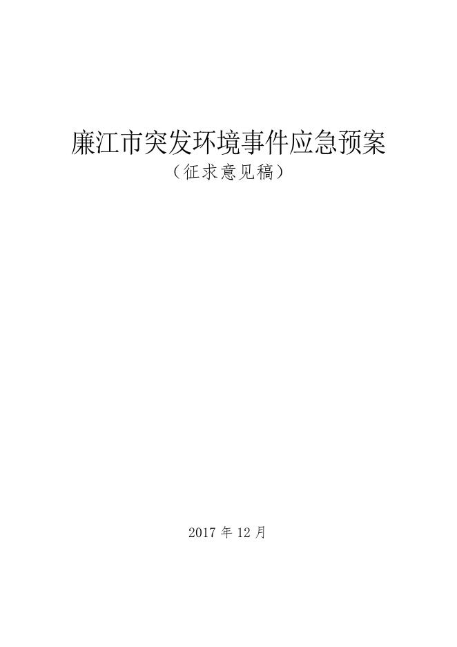 关于向社会公开征求《廉江市突发环境事件应急预案(征求意见稿)》意见的公告 - 廉江市人民政府门户网站.doc