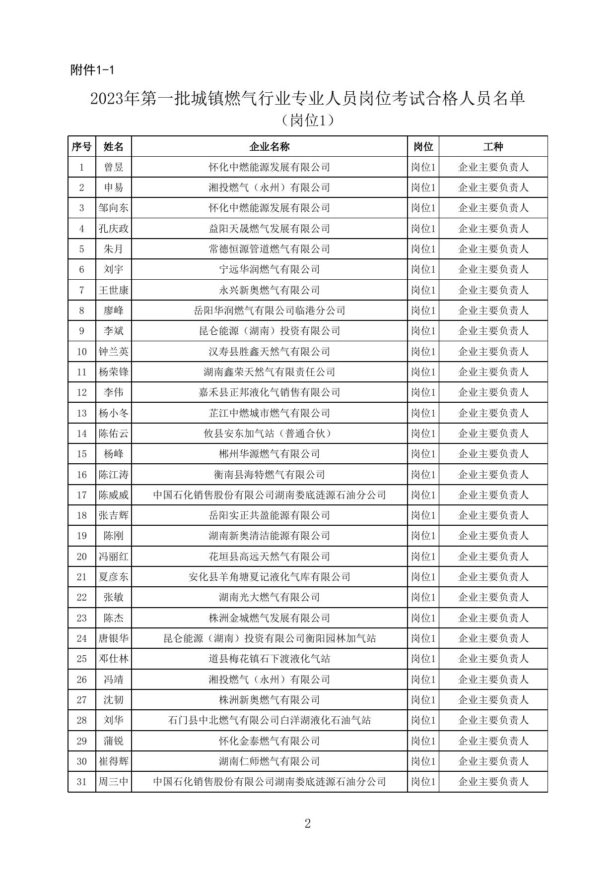附件:22023年第一批城镇燃气行业专业人员岗位考试合格人员名单.xlsx