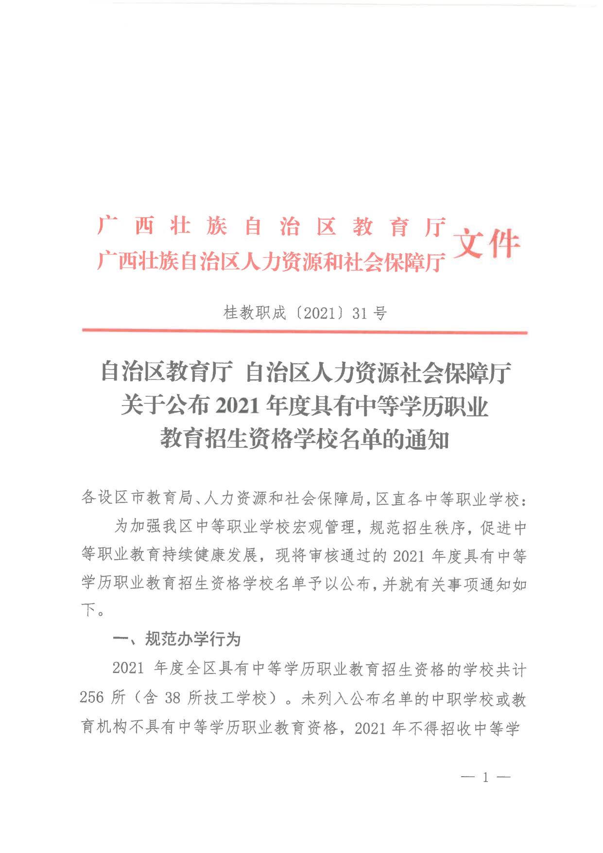 自治区教育厅自治区人力资源和社会保障厅关于公布2021年度具有中等学历职业教育招生资格学校名单的通知.pdf