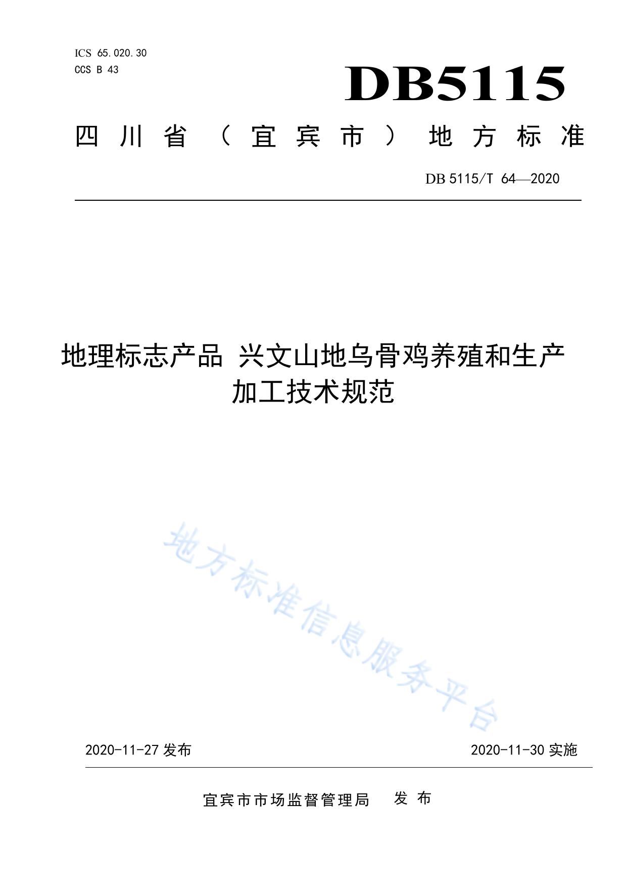 地理标志产品 兴文山地乌骨鸡养殖和生产加工技术规范
