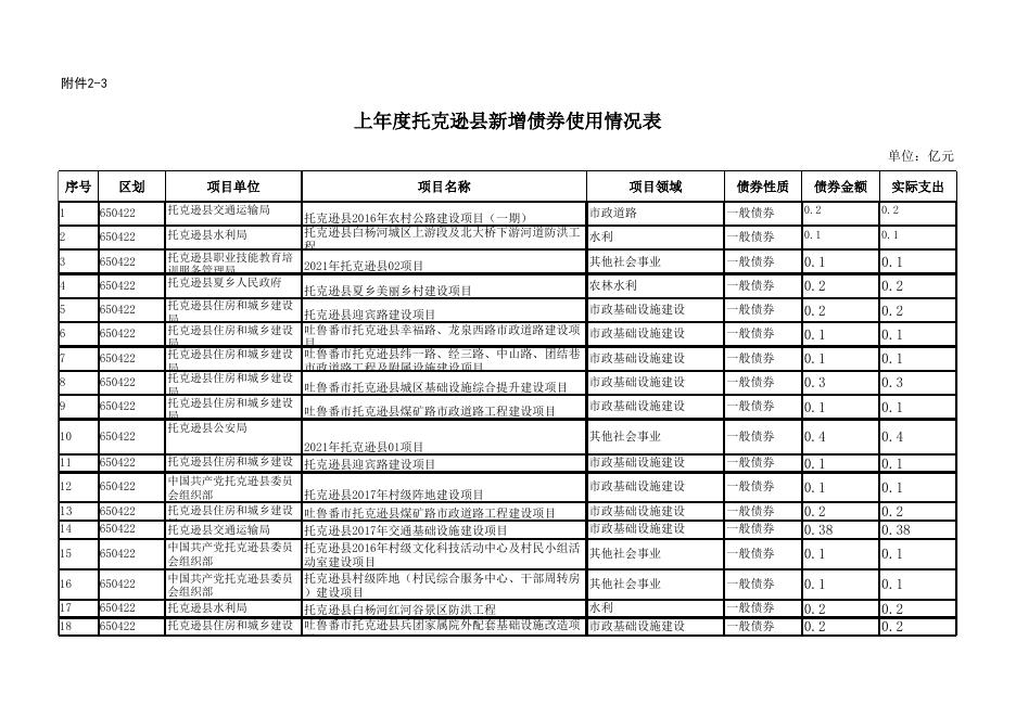 附件22-3上年度托克逊县新增债券使用情况表.xlsx