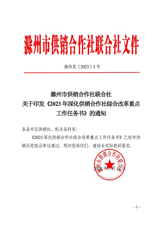 (滁供发【2023】3号)-关于印发《2023年深化供销合作社综合改革重点工作任务书》的通知-盖章版.pdf
