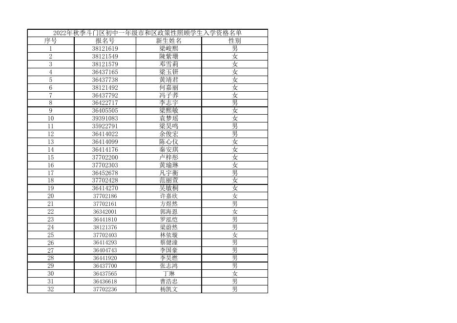 附件4:2022年秋季斗门区初中一年级市和区政策性照顾学生入学资格名单.xlsx