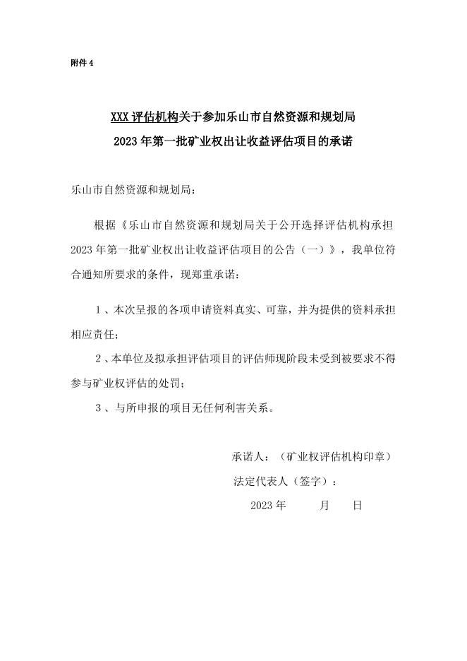 XXX评估机构关于参加乐山市自然资源和规划局2023年第一批矿业权出让收益评估项目的承诺.docx