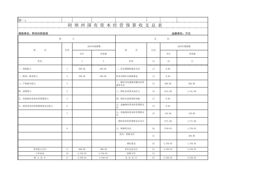附件1+2023年度阿坝州州级国有资本经营预算表.xls