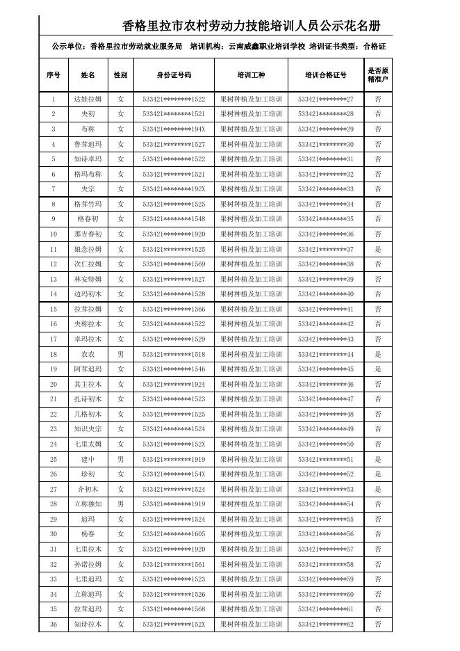 云南威鑫职业培训学校培训公示 - 副本(1).xlsx