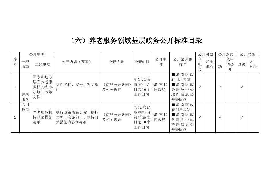 港南区民政局养老服务领域基层政务公开标准目录.doc