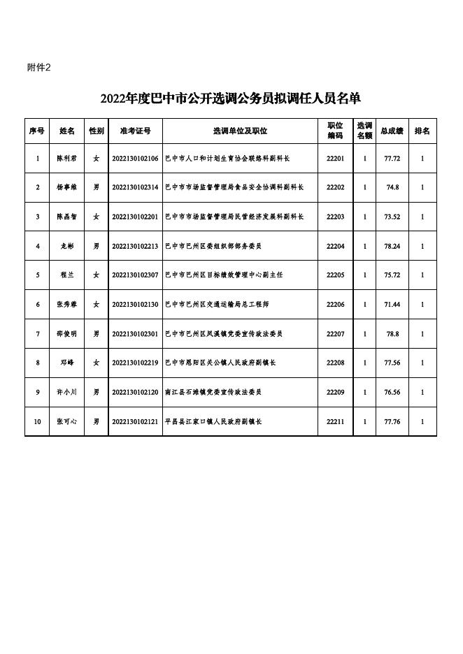 中共巴中市委组织部2022年度巴中市公开遴选(考调)和公开选调公务员拟任职人员首批公示_巴中市人民政府.pdf