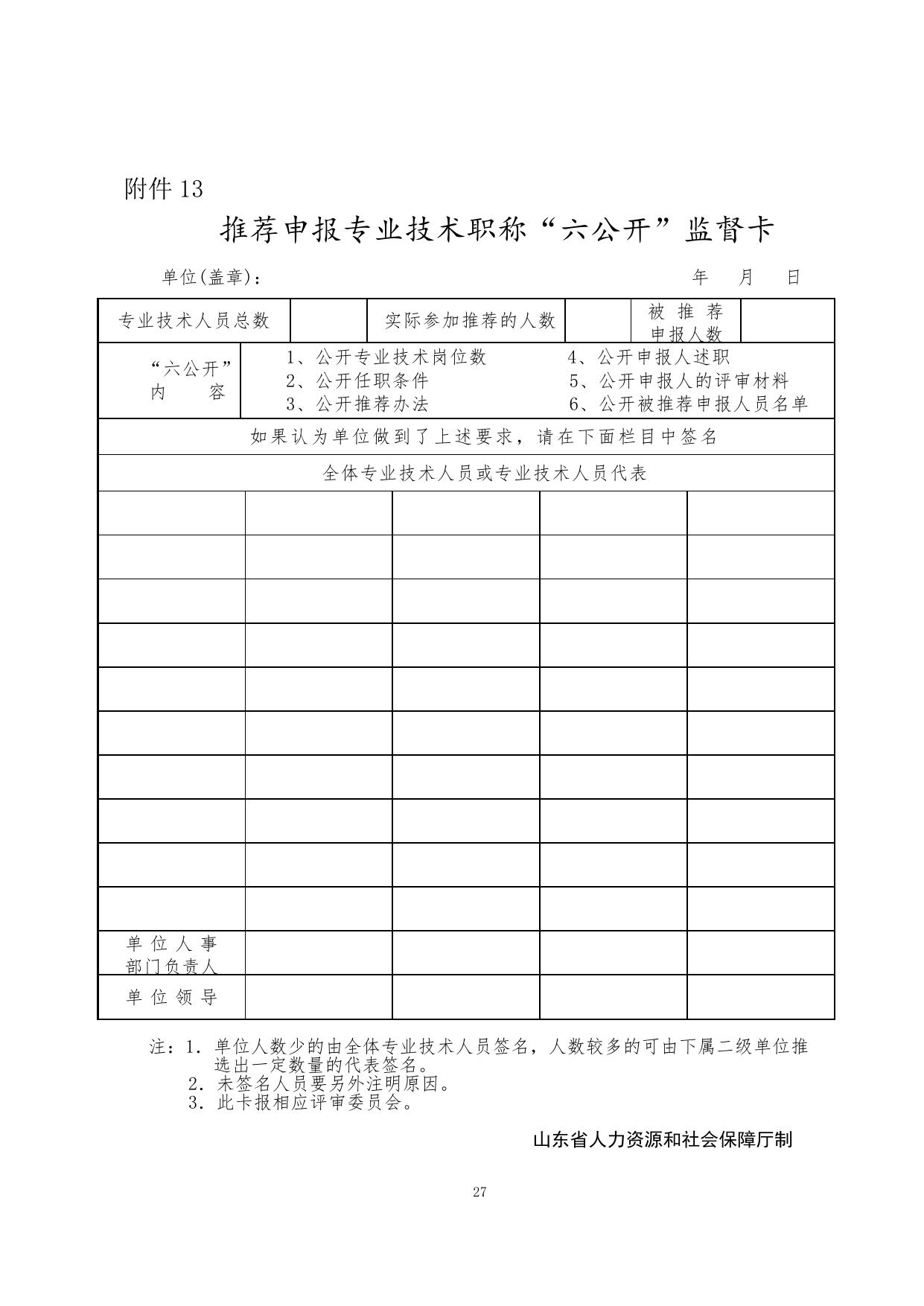 附件13:推荐申报专业技术职称“六公开”监督卡.doc