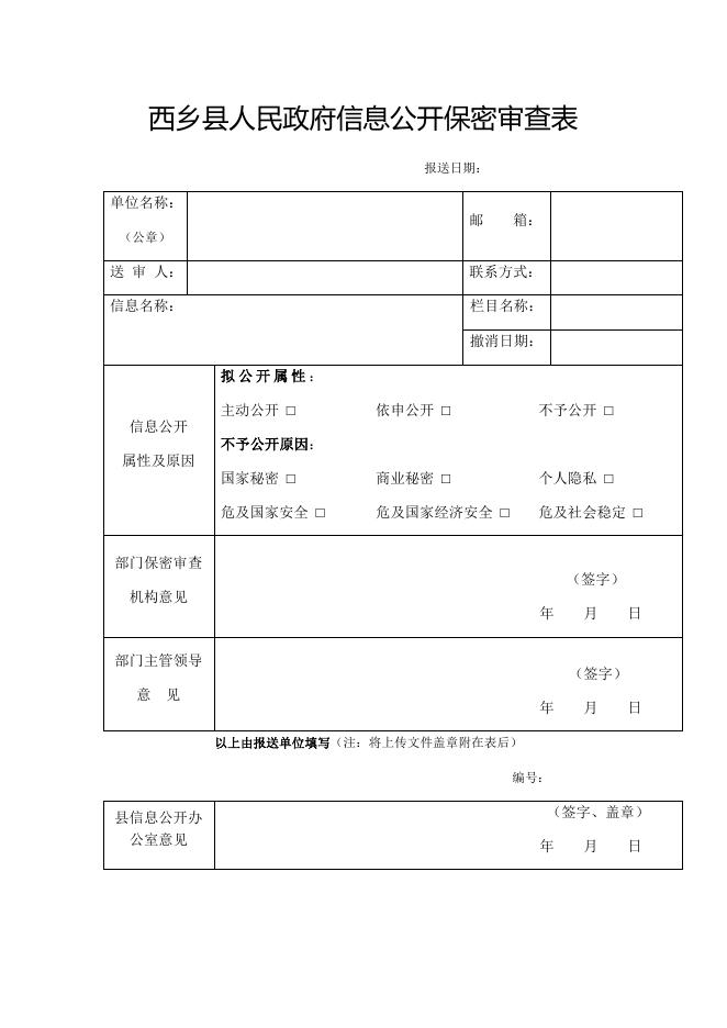 西乡县人民政府信息公开保密审查表.docx