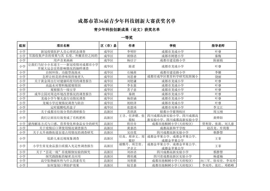 成都市第36届青少年科技创新大赛(青少年科技创新成果-论文)获奖名单.pdf