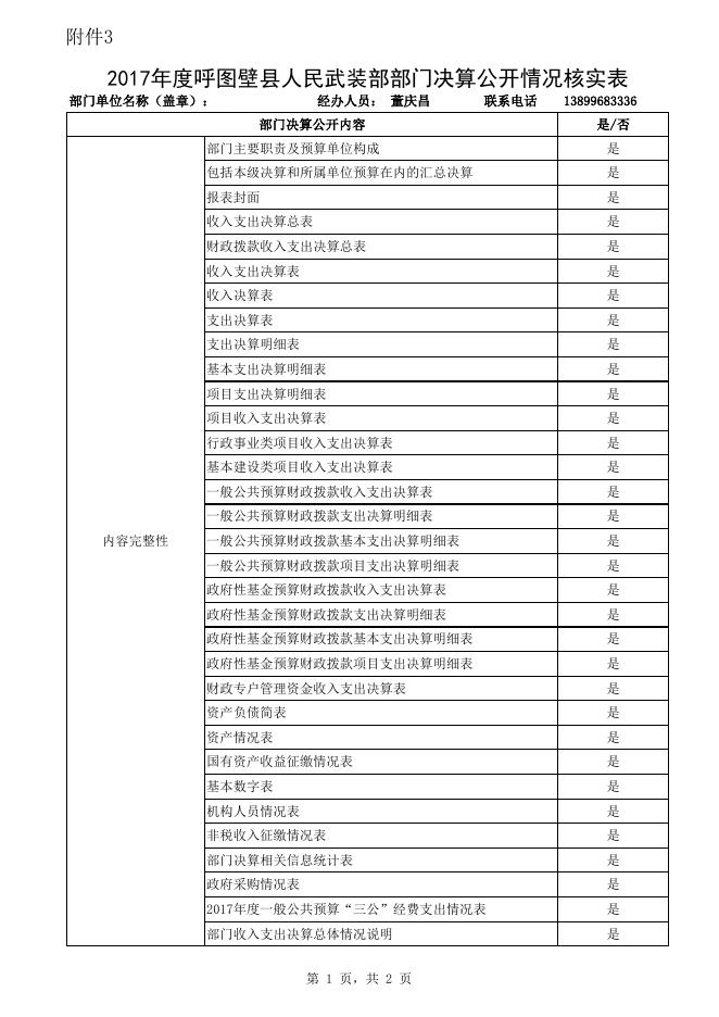 5呼图壁县人民武装部2017年度部门决算公开情况核实表.xls