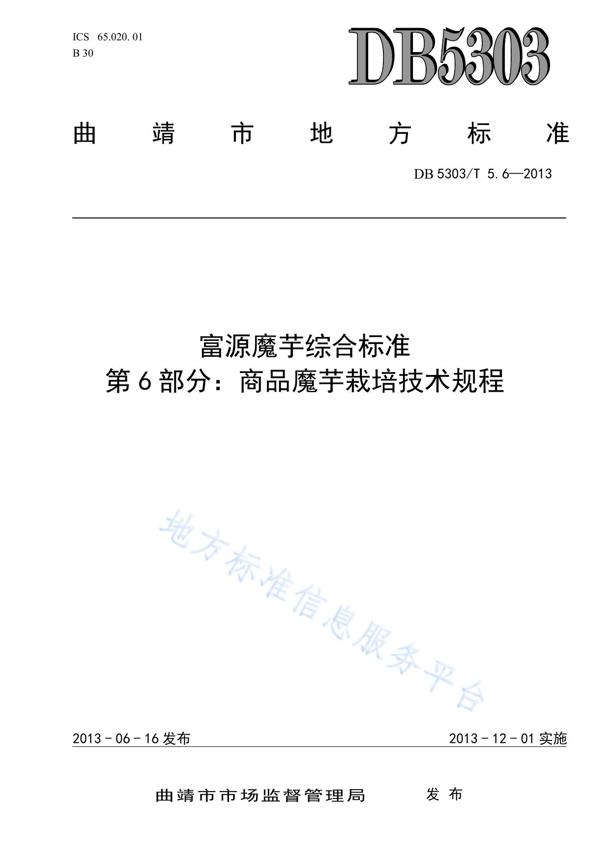 富源魔芋综合标准第6部分:商品魔芋栽培技术规程