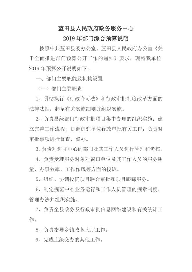 蓝田县人民政府政务服务中心——预算公开说明.doc