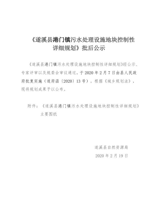 附件:港门镇污水处理设施地块控制性详细规划批后公示.docx