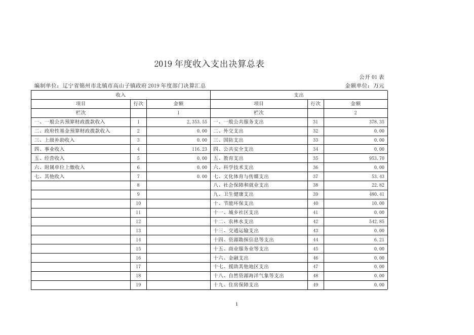 北镇市高山子镇2019年度部门决算报表.doc