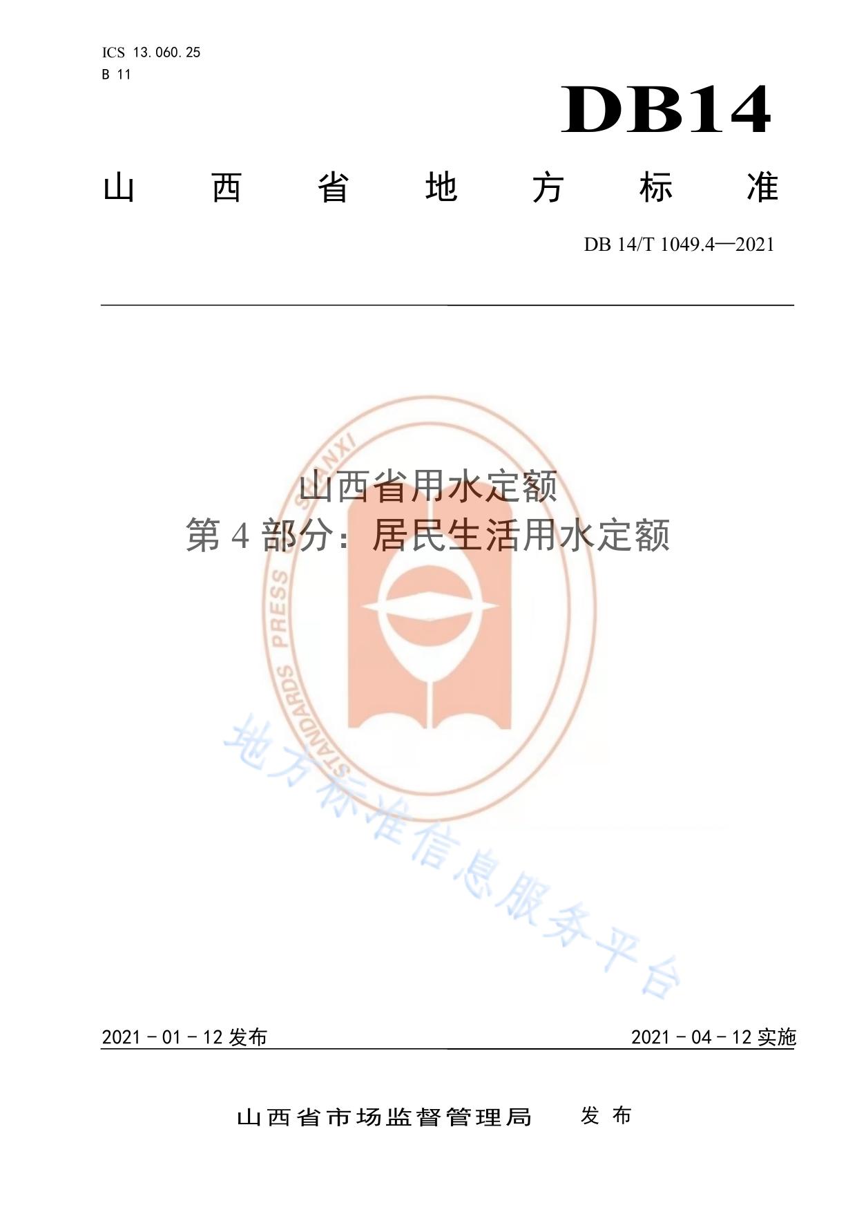 《山西省用水定额第4部分:居民生活用水定额》