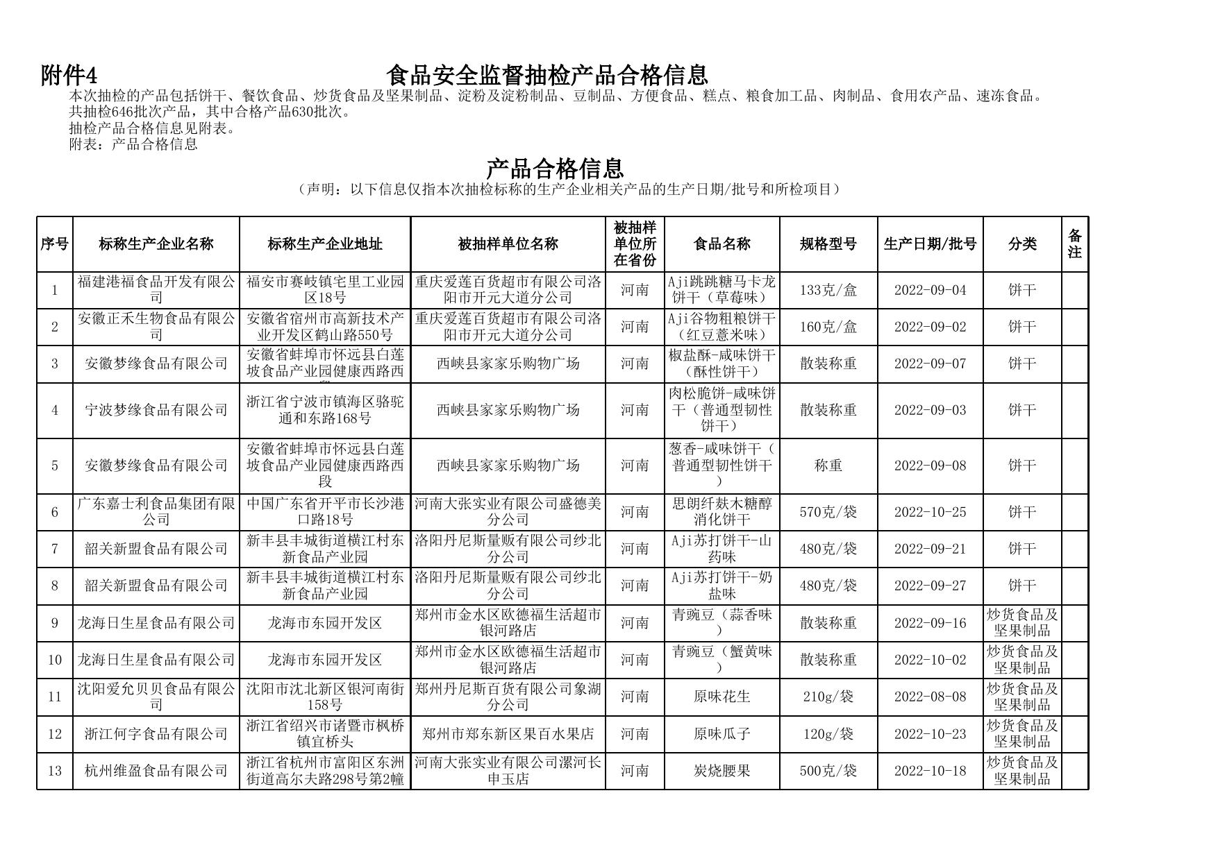 食品安全监督抽检产品合格信息.xls