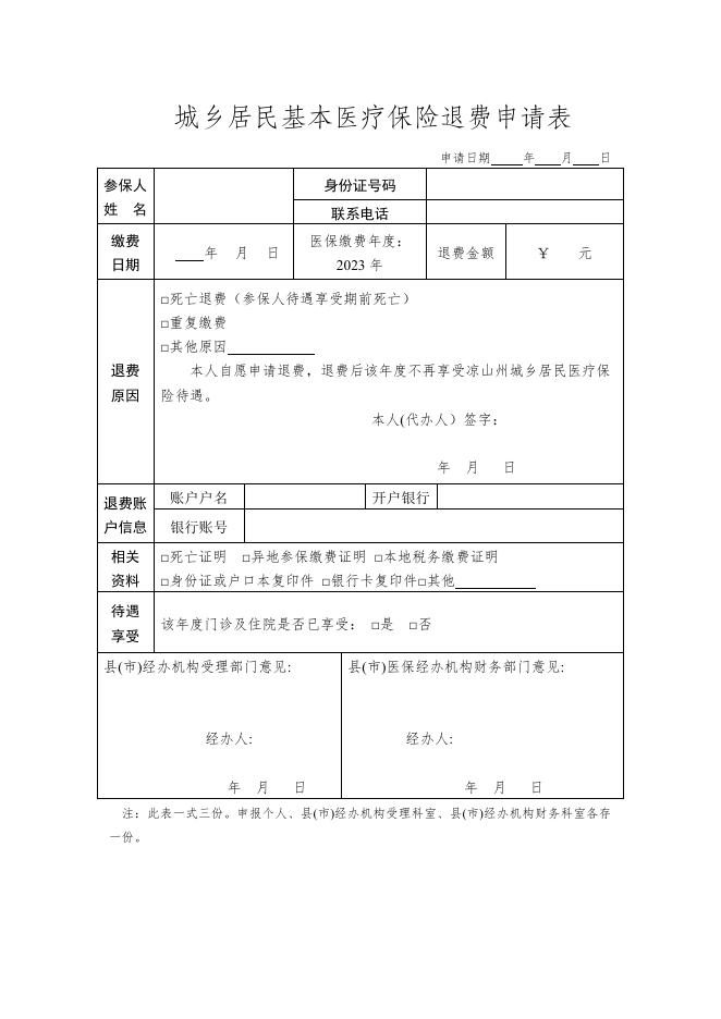城乡居民基本医疗保险退费申请表.docx