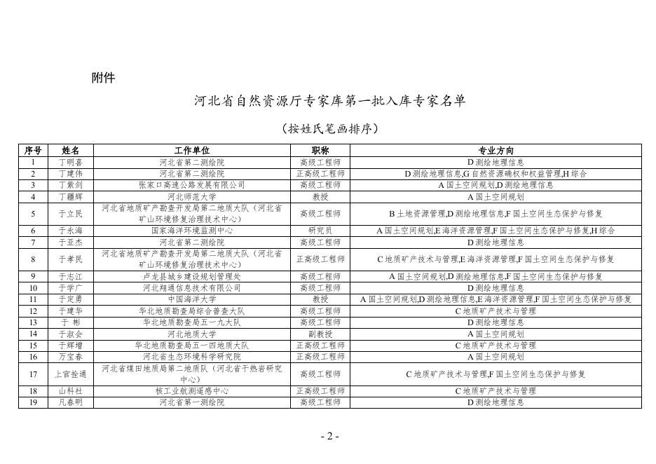 河北省自然资源厅专家库第一批入库专家名单.docx