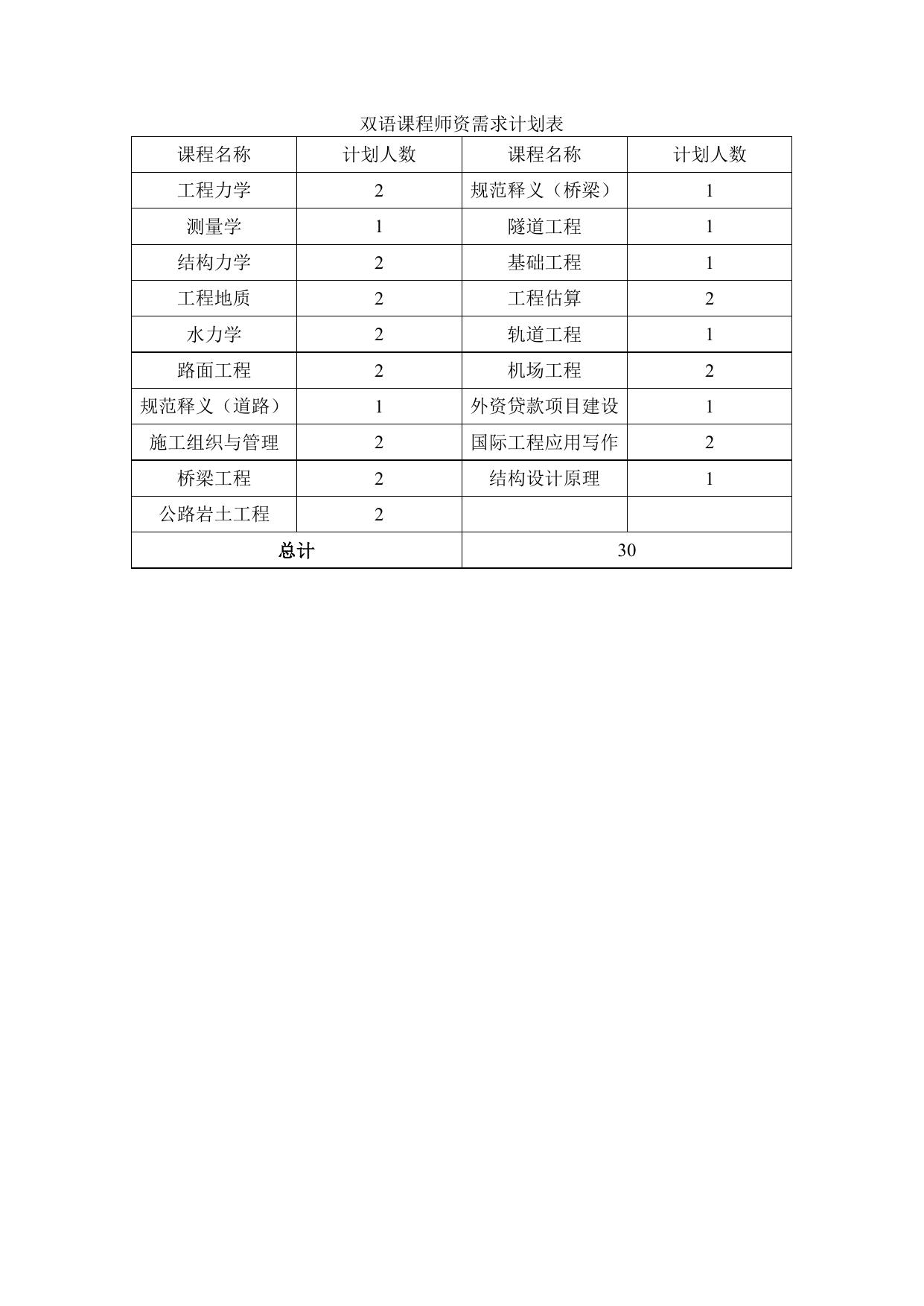 长安大学公路学院附件1:双语课程师资需求计划表.doc