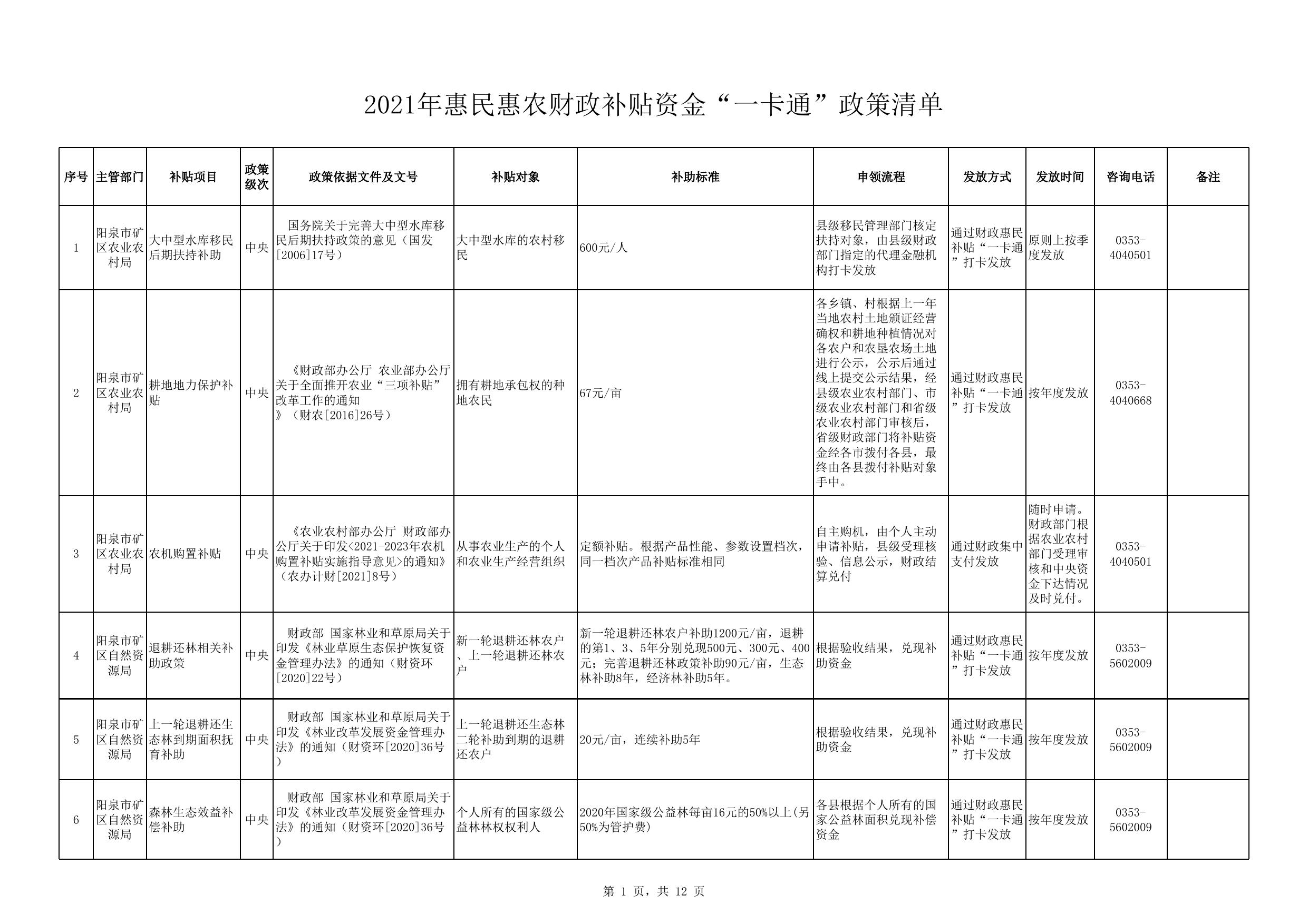 2021年惠民惠农财政补贴资金“一卡通”政策清单.xlsx