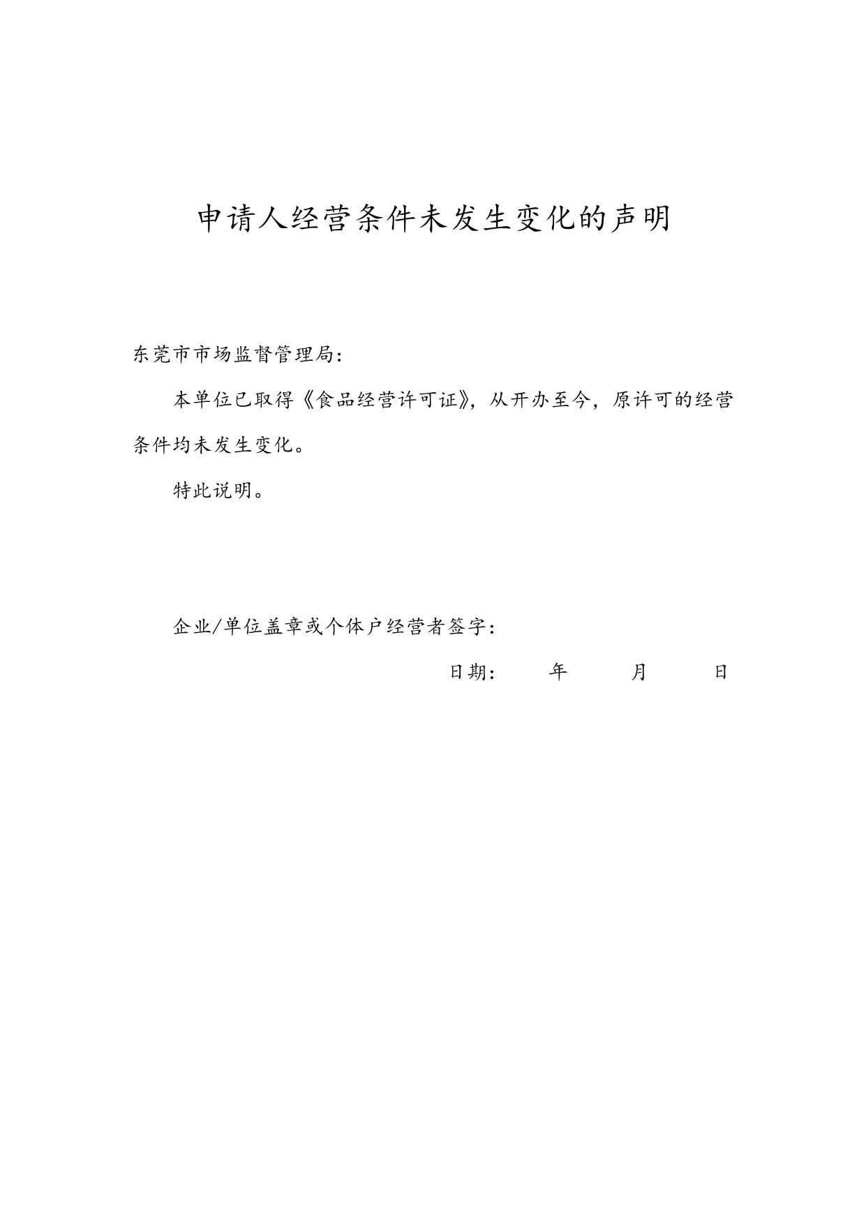 申请人经营条件未发生变化的声明.doc