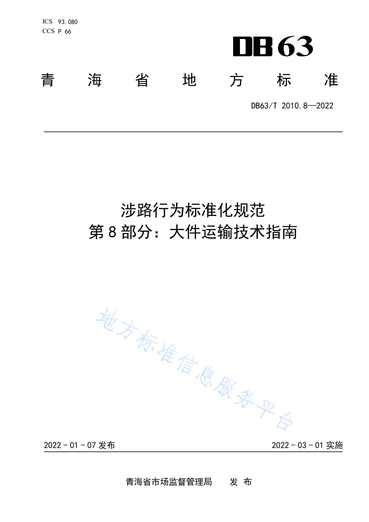 涉路行为标准化规范 第8部分:大件运输技术指南