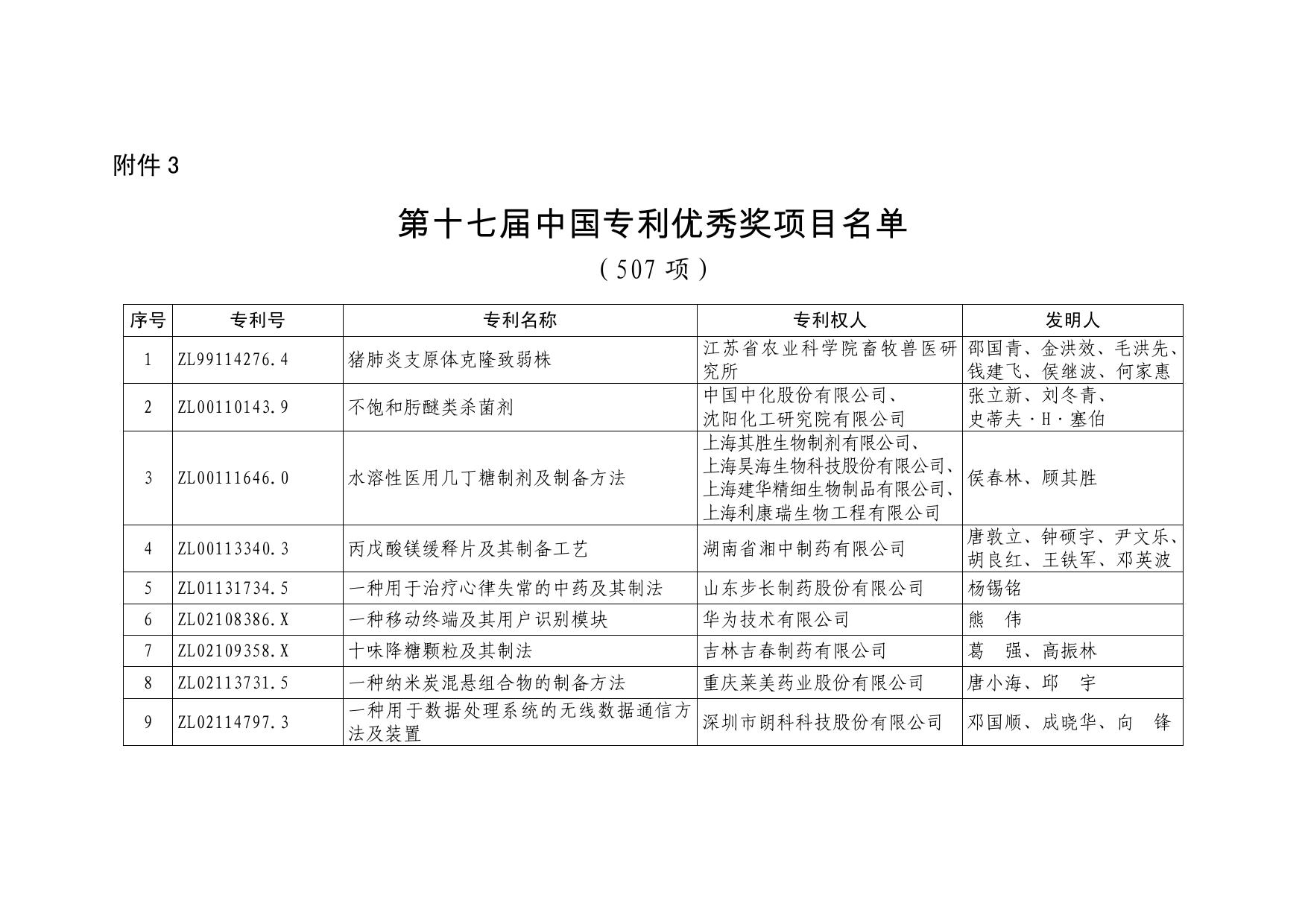 第十七届中国专利优秀奖项目名单.pdf