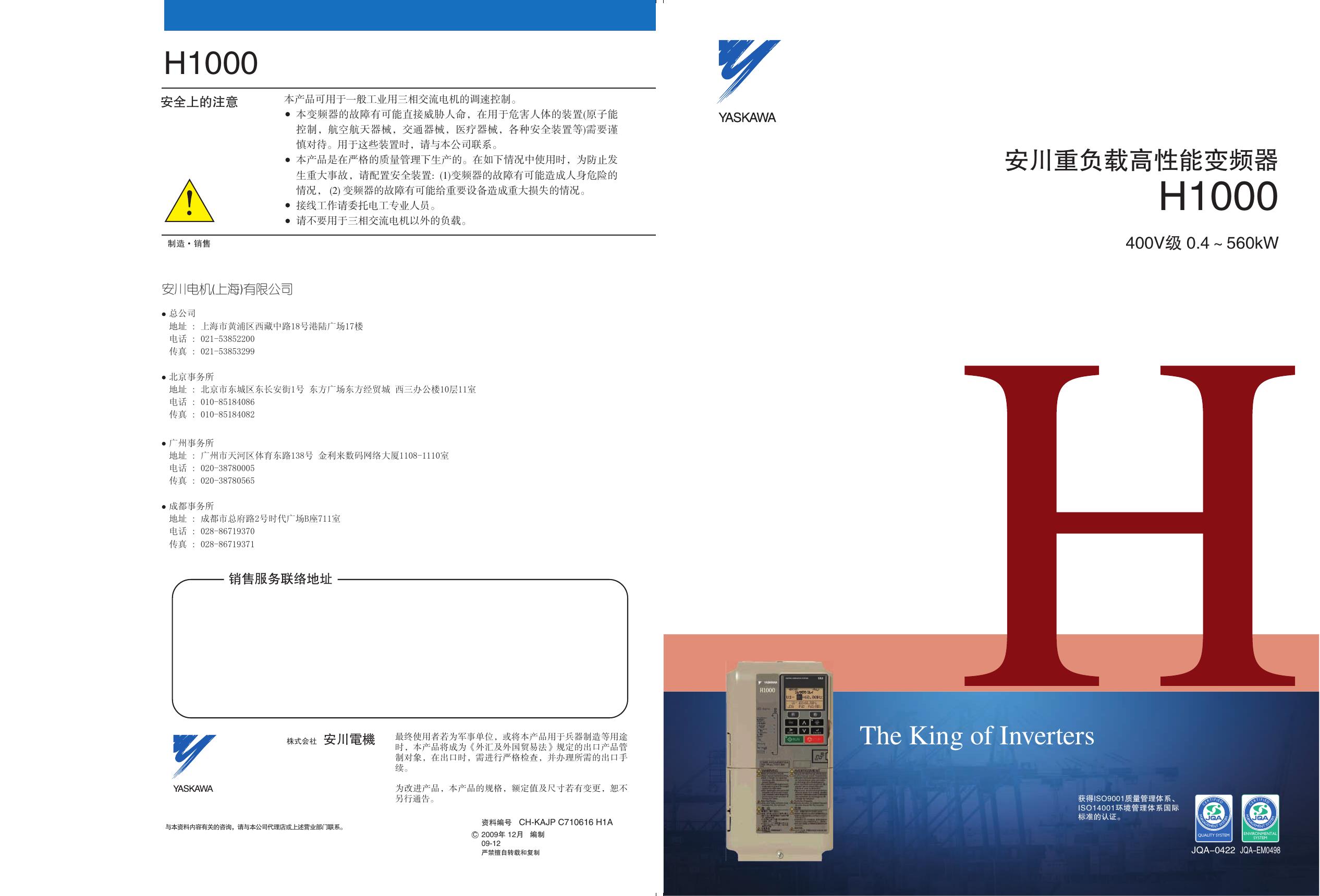 安川CIMR-HB4A0031F总负载高性能变频器说明书