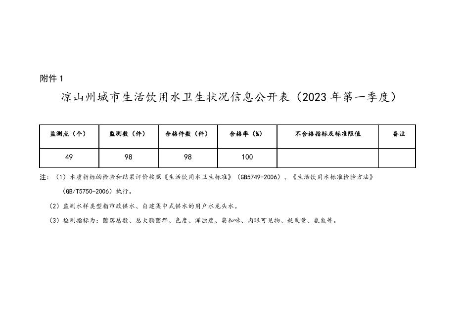 凉山州2023年第一季度城市用户水龙头水质信息公开表.doc