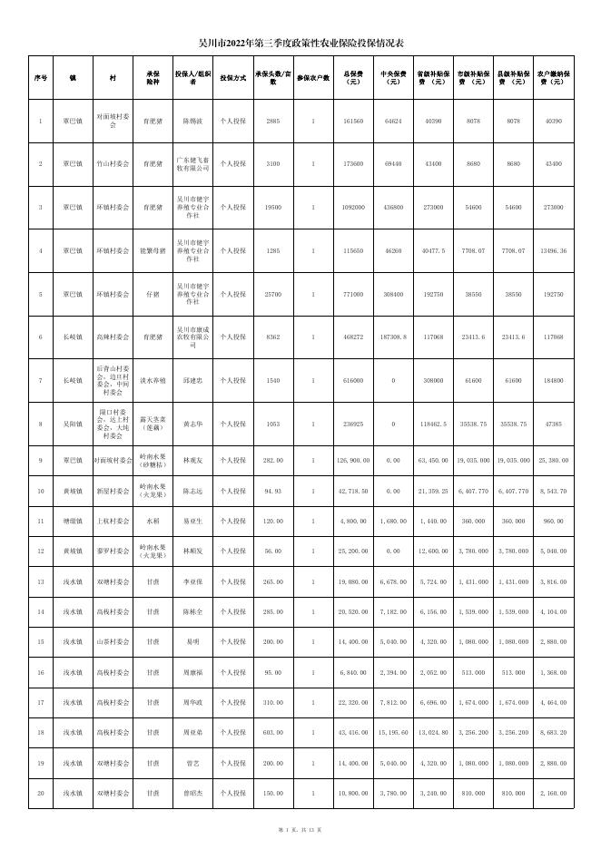 附件:吴川市2022年第三季度政策性农业保险投保情况表.pdf