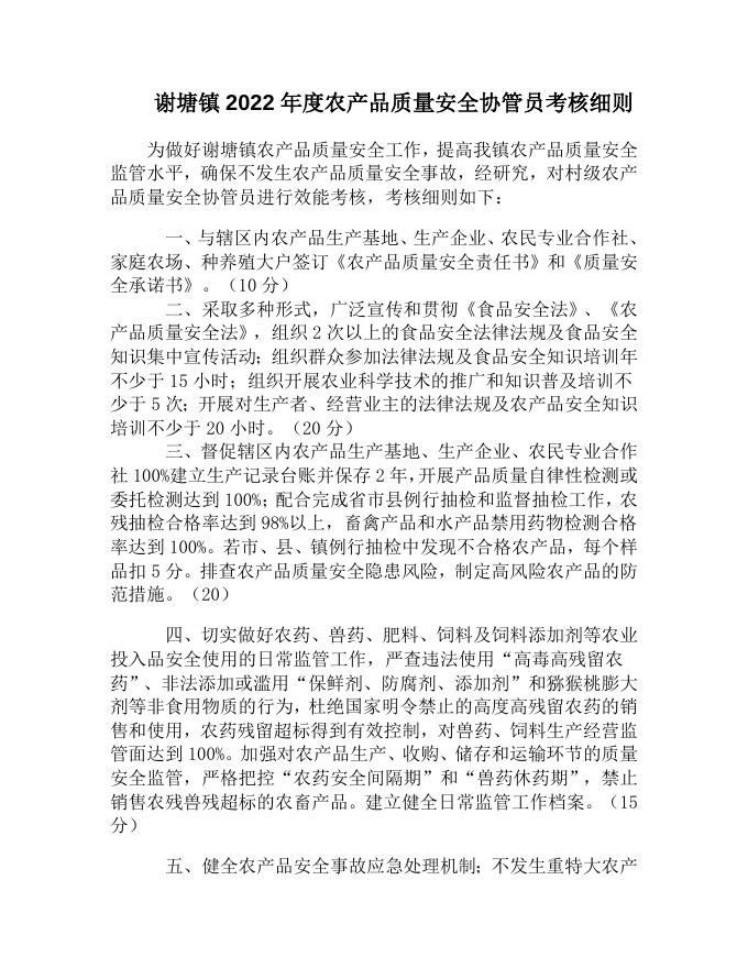 谢塘镇村级农产品质量安全协管员考核细则.docx