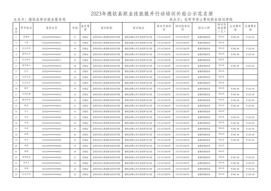 17德钦县佛山乡巴美村萨龙小组畜禽养殖培训班补贴公示花名册.xlsx