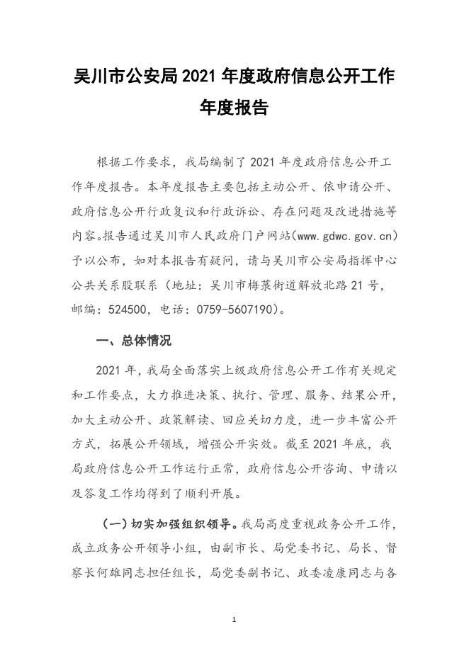 吴川市公安局2021年度政府信息公开工作年度报告.doc