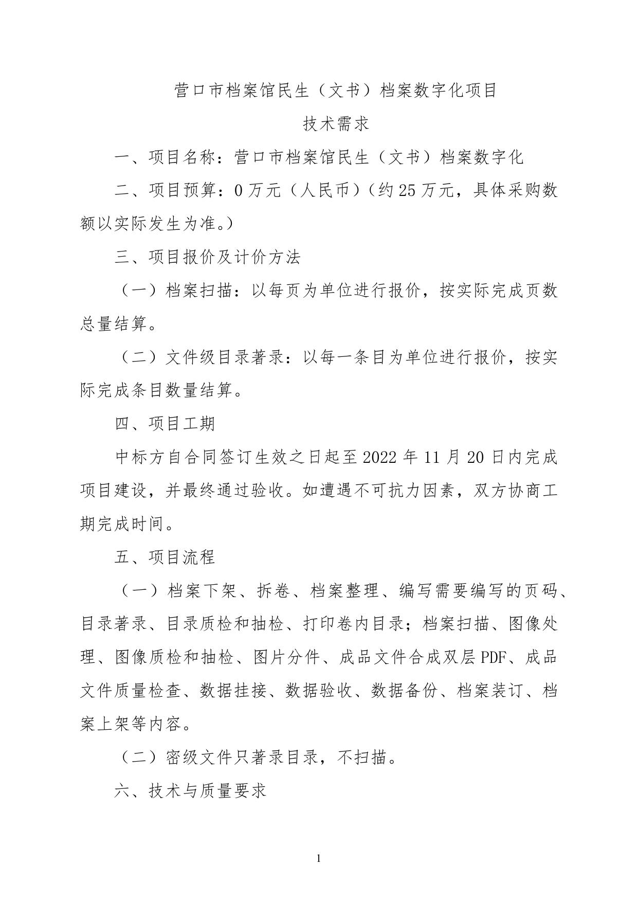 营口市档案馆民生(文书)档案数字化项目技术需求.docx