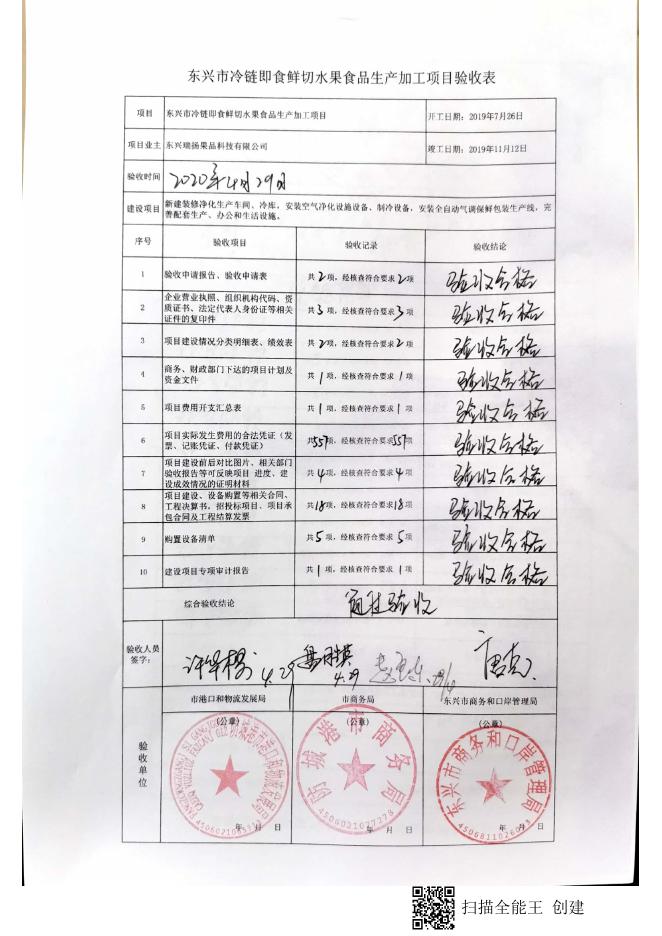 2.东兴市冷链即食鲜切水果食品生产加工项目验收表.pdf