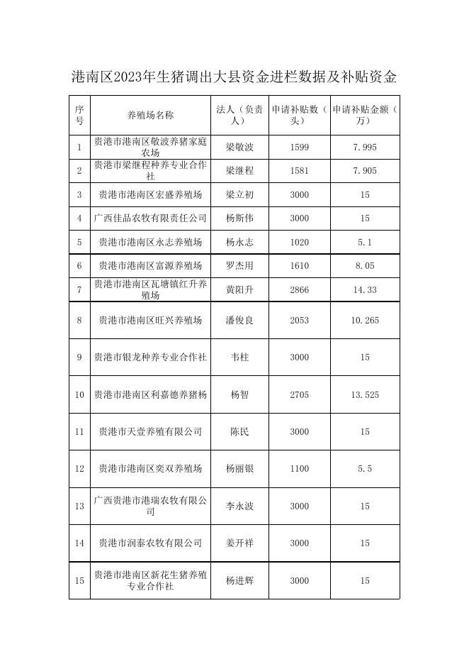港南区2023年生猪调出大县资金进栏数据及补贴资金.xls